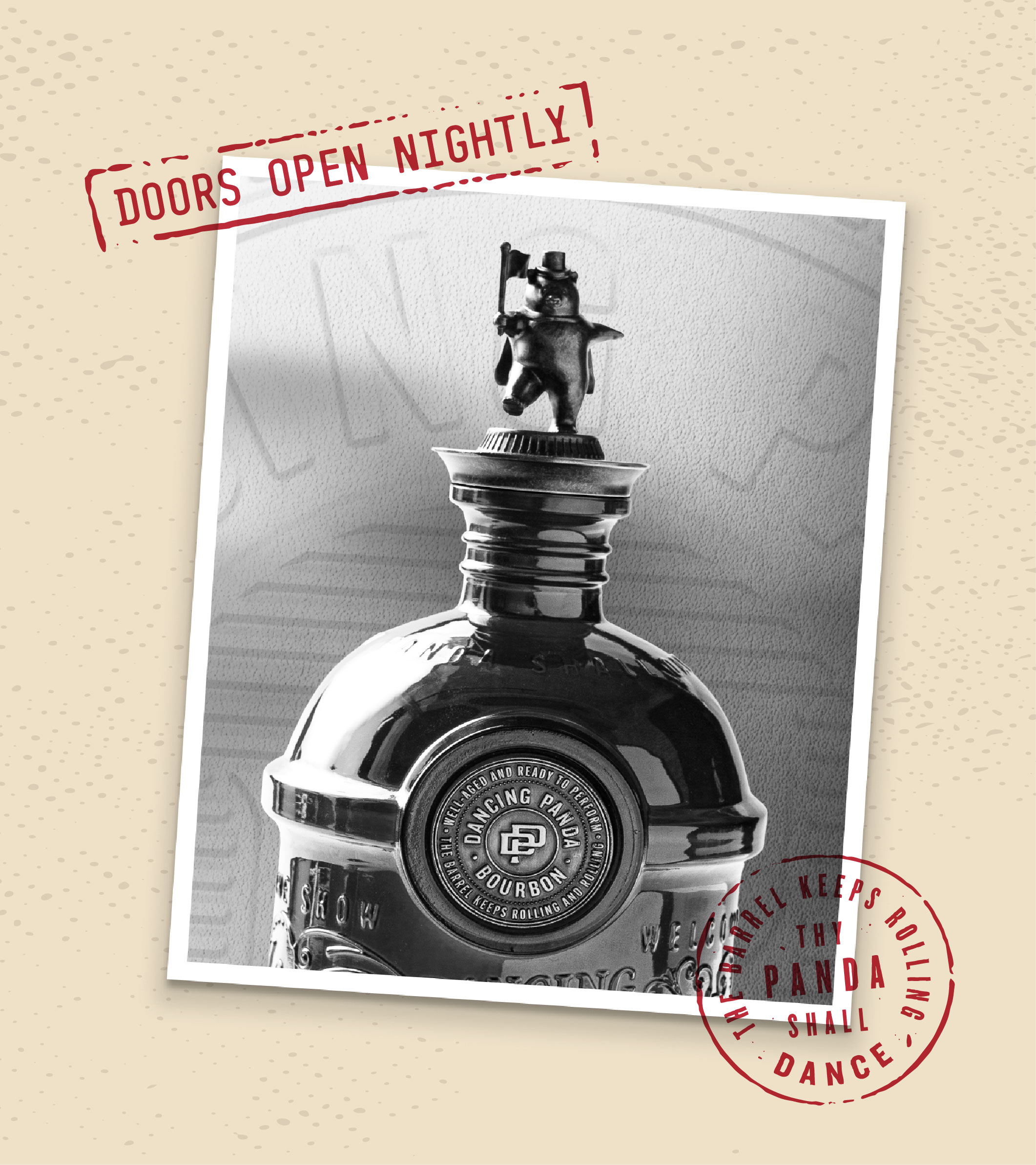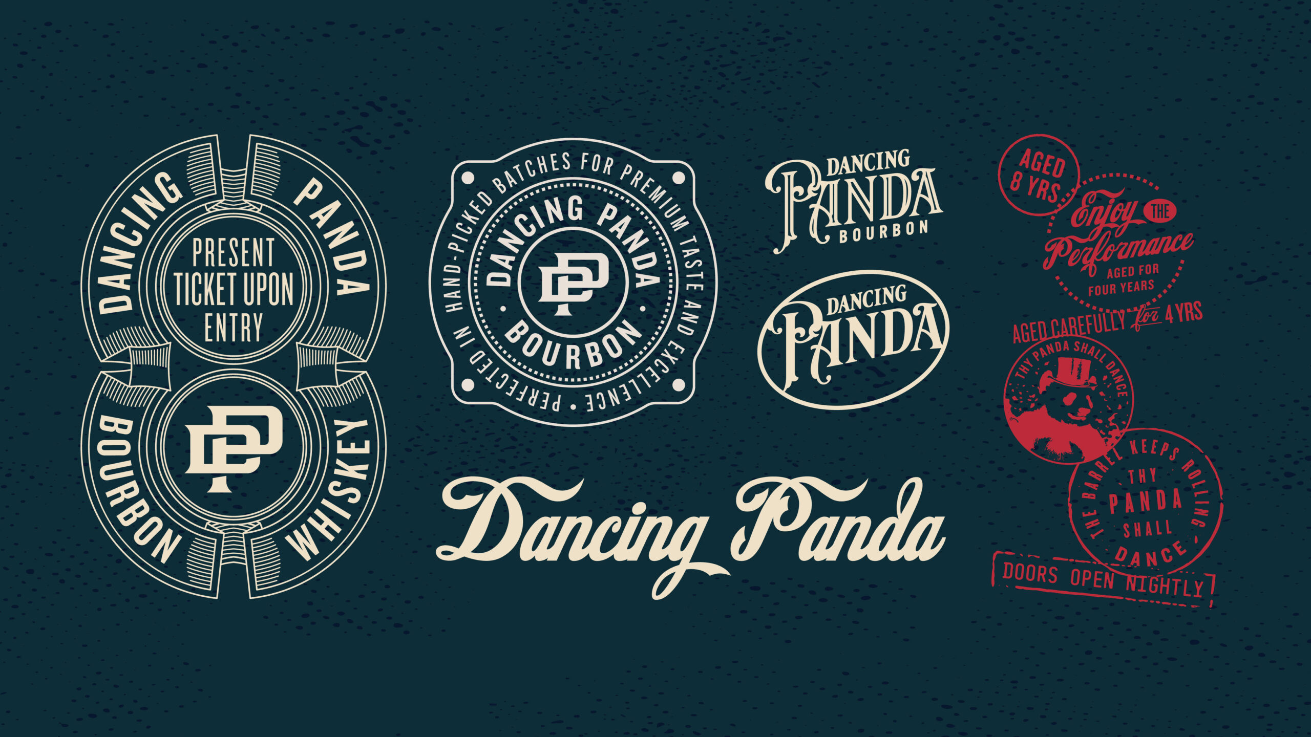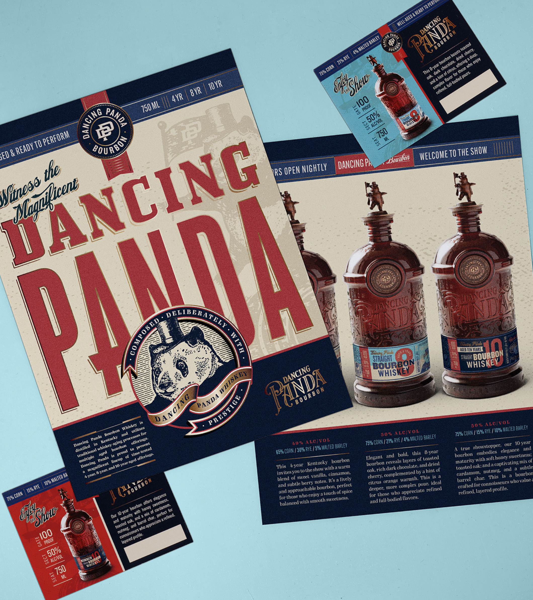 Our goal was to create a brand world that balanced craft and spectacle: highquality, well-aged bourbon presented with confidence, charm, and a sense of showmanship. Dancing Panda doesn’t whisper from the shelf—it invites you in, curtain up.
