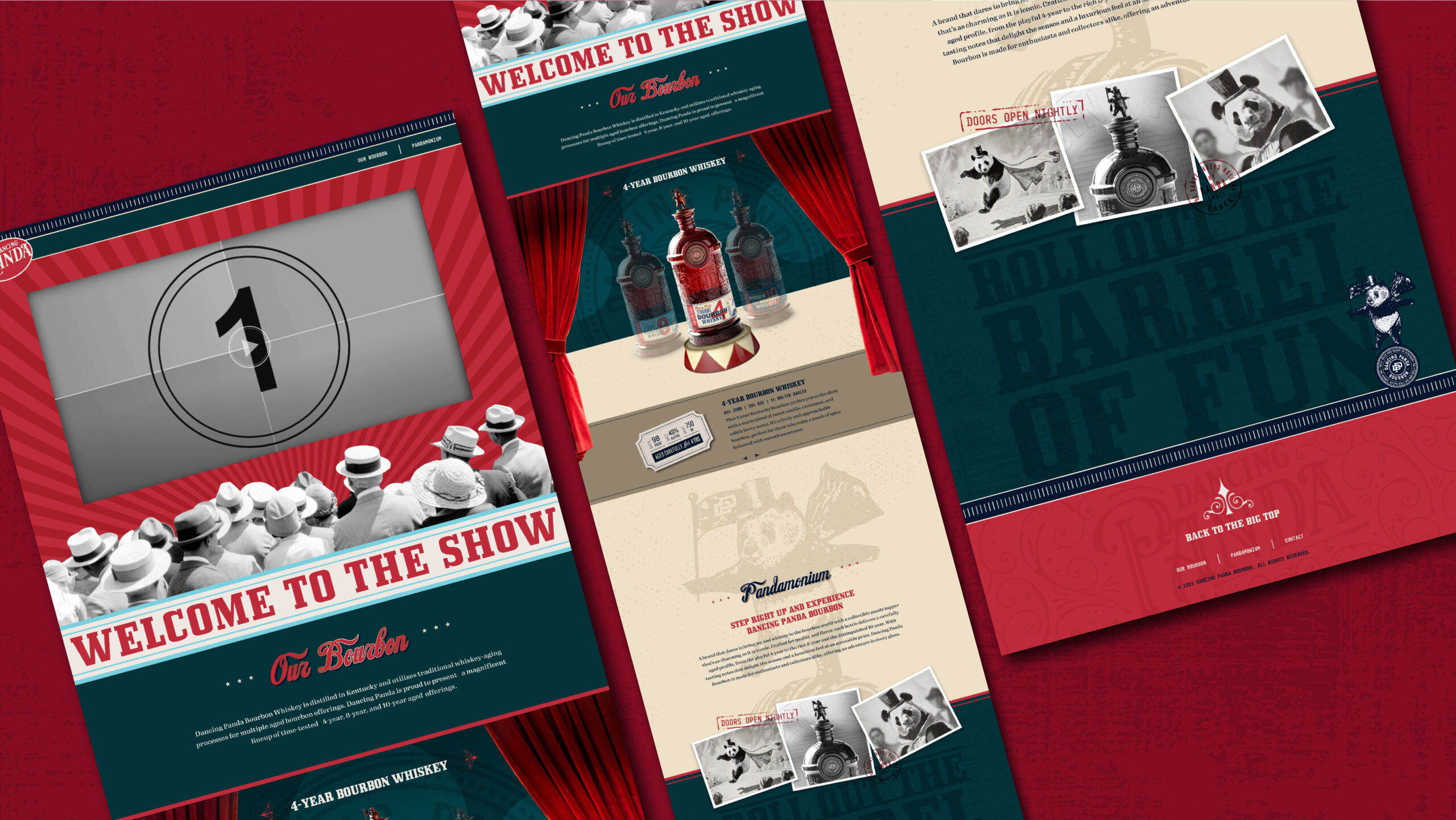 Welcome to the show! A playful yet premium bourbon brand brought to life through a theatrical lens—where classic Kentucky bourbon steps into the spotlight with a big-top twist.